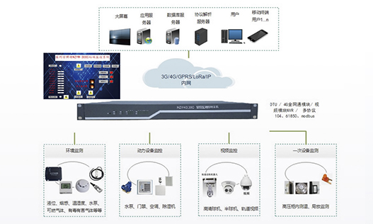 站端監(jiān)控包括各種探測(cè)傳感器、數(shù)據(jù)采集單元、無線無源測(cè)溫系統(tǒng)、局放在線監(jiān)測(cè)系統(tǒng)、門禁系統(tǒng)幾個(gè)部分。站端監(jiān)控安裝在配電室實(shí)時(shí)監(jiān)測(cè)現(xiàn)場(chǎng)實(shí)際環(huán)境狀態(tài)及各項(xiàng)參數(shù)如視頻明火、煙霧、人員非法入侵動(dòng)物入侵、環(huán)境溫濕度、門禁、空調(diào)狀態(tài)、臭氣含量、開關(guān)柜母排溫度、開關(guān)柜內(nèi)局放等讀取二次電力設(shè)備監(jiān)控系統(tǒng)電量參數(shù)及報(bào)警事件信息通過通信網(wǎng)絡(luò)將現(xiàn)場(chǎng)各項(xiàng)參數(shù)及狀態(tài)上傳···